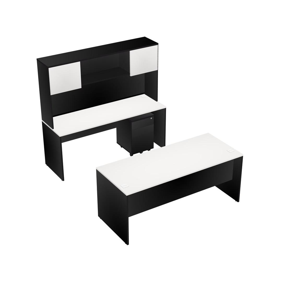 Office Parallel Desk Credenza Desk + Wooden Mobile Drawers + Hutch