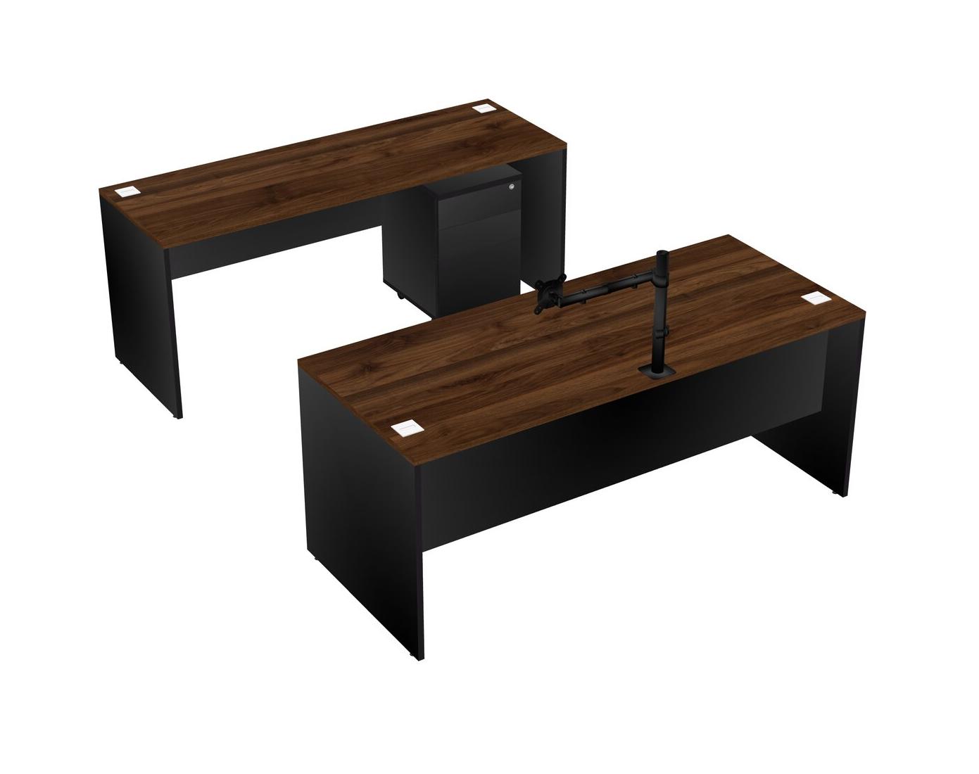 Office Parallel Desk Credenza Desk + Wooden Mobile Drawers + Monitor Arm (single Arm)