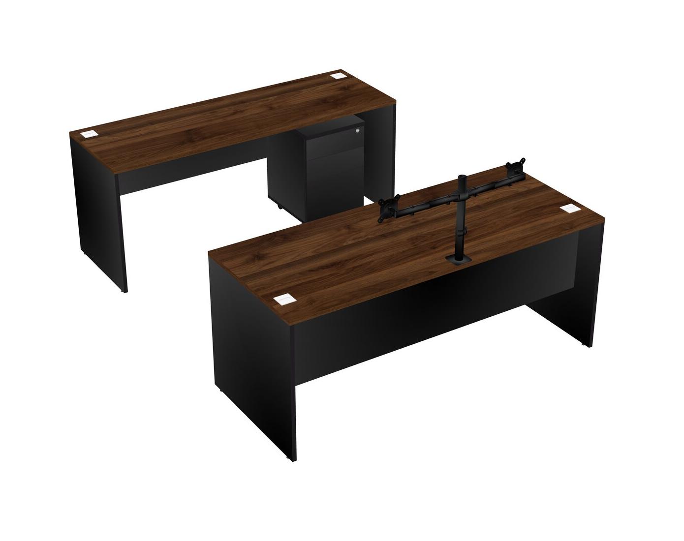 Office Parallel Desk Credenza Desk + Wooden Mobile Drawers + Monitor Arm (double Arms)