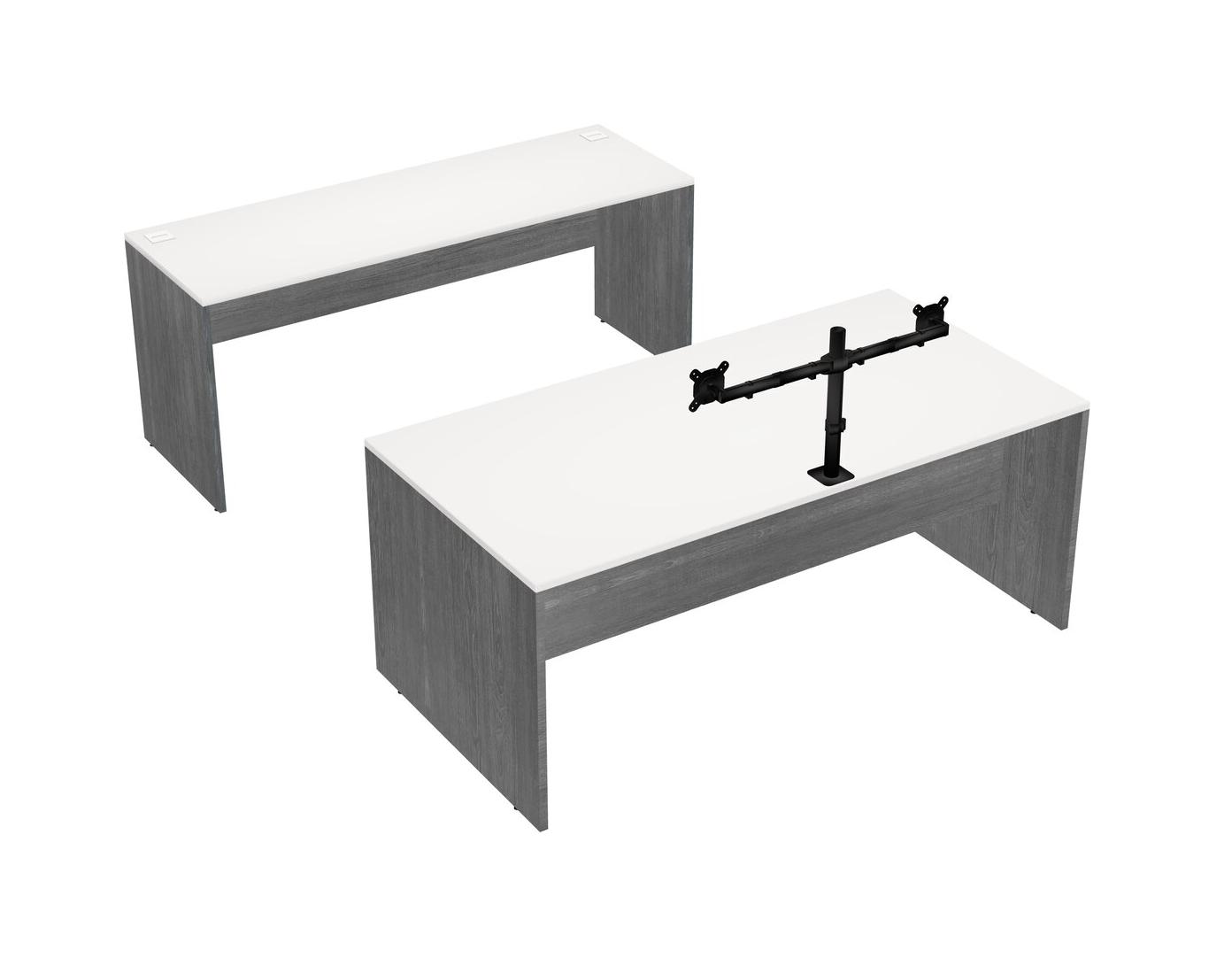 Office Parallel Desk Credenza Desk + Monitor Arm (double Arms)
