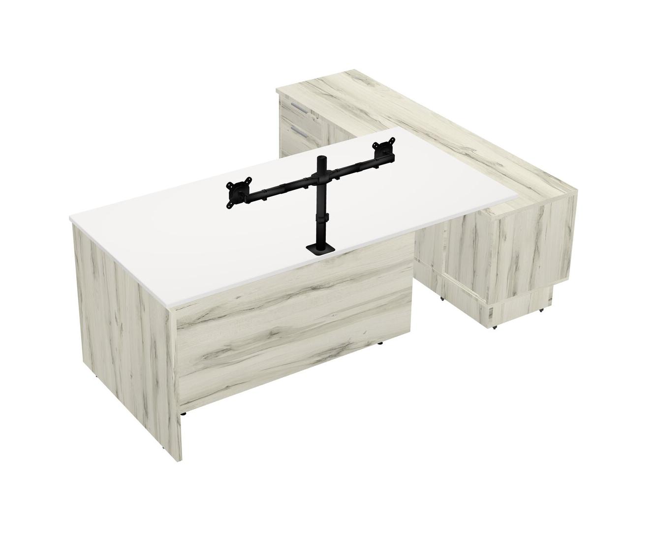 White Modern Executive Desk With Low Sliding Door Cabinet With Built-in Drawers + Monitor Arm (double Arms)