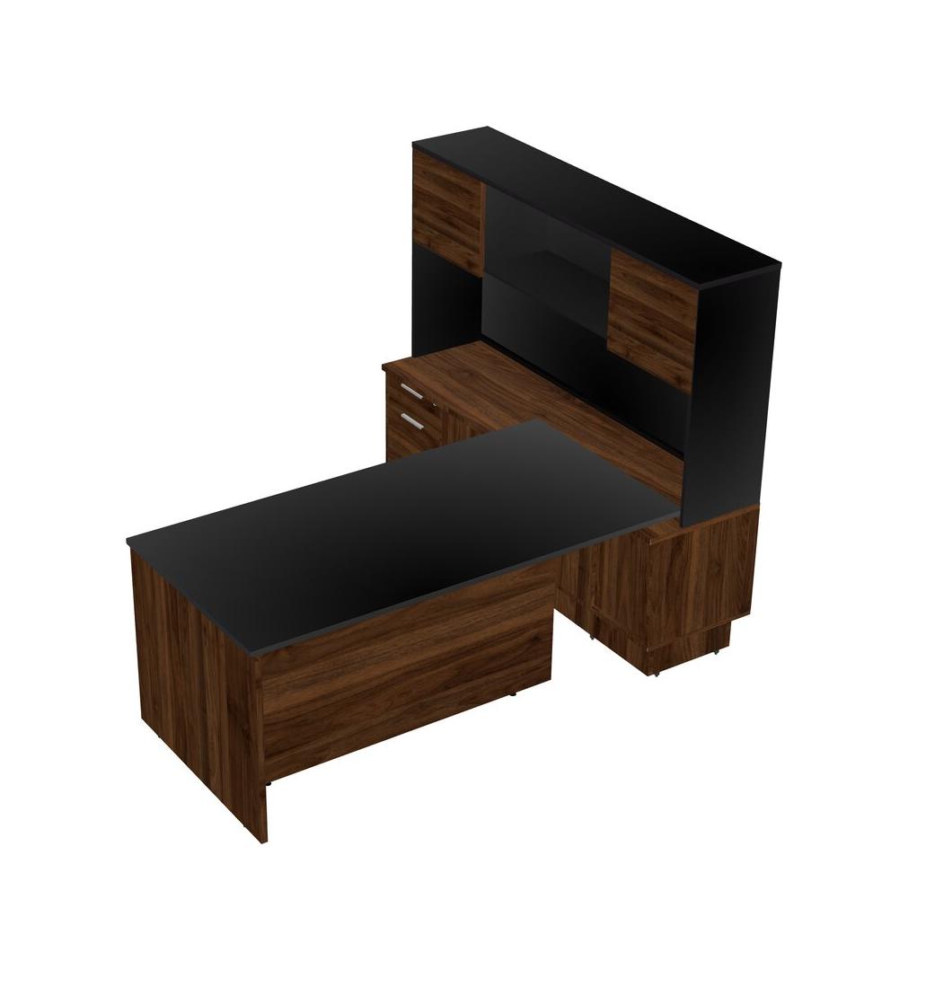 Black Modern Executive Desk With Low Sliding Door Cabinet With Built-in Drawers + Hutch