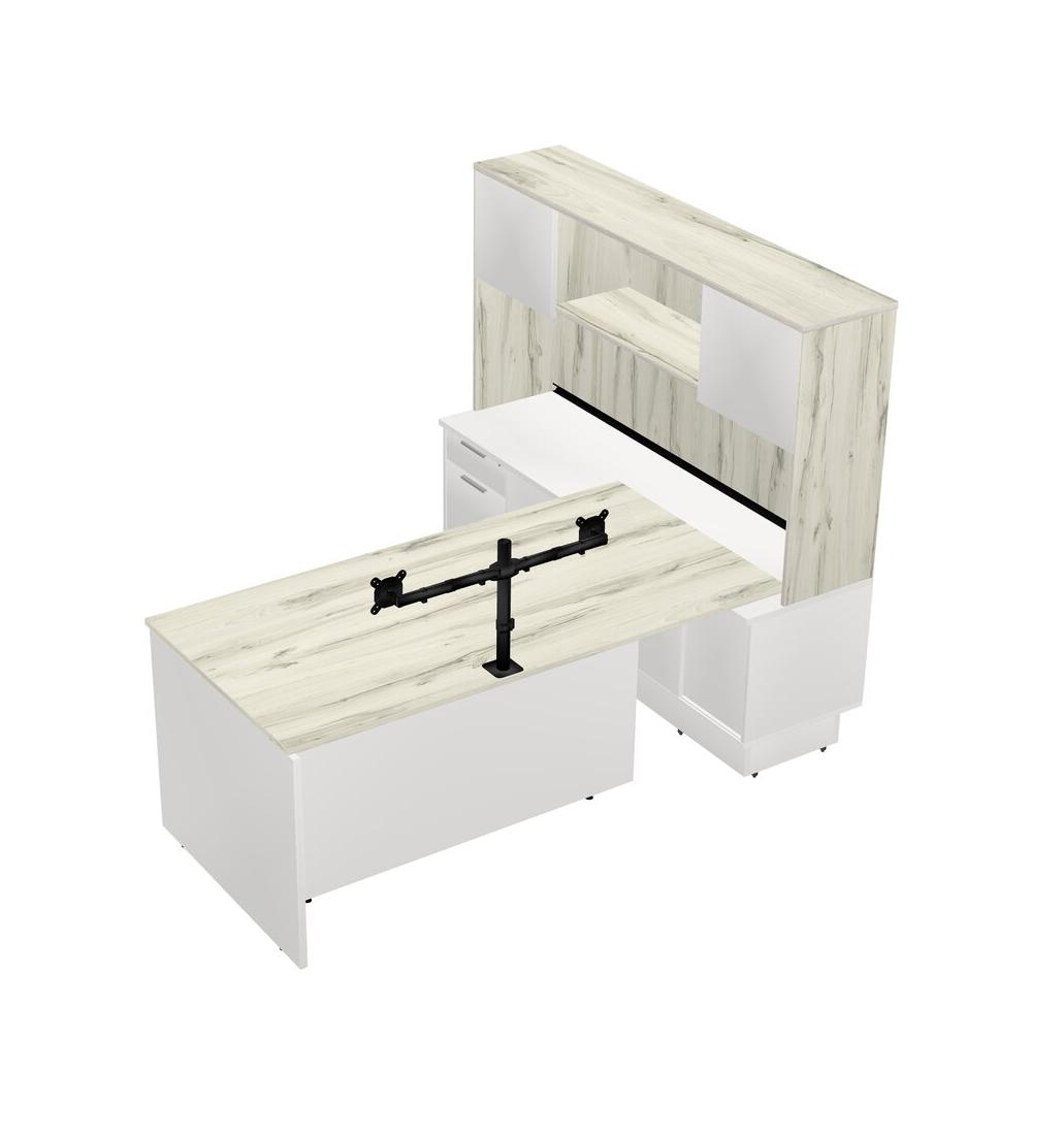 Heinne Holz Modern Executive Desk With Low Sliding Door Cabinet With Built-in Drawers + Monitor Arm (double Arms) + Hutch