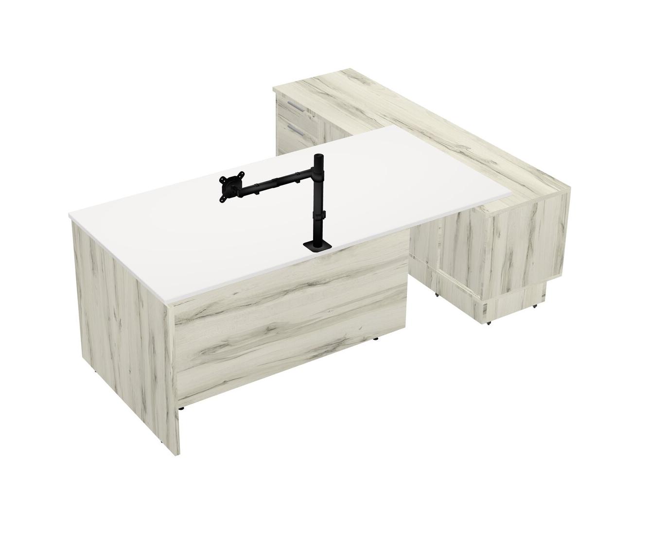 White Modern Executive Desk With Low Sliding Door Cabinet With Built-in Drawers + Monitor Arm (single Arm)