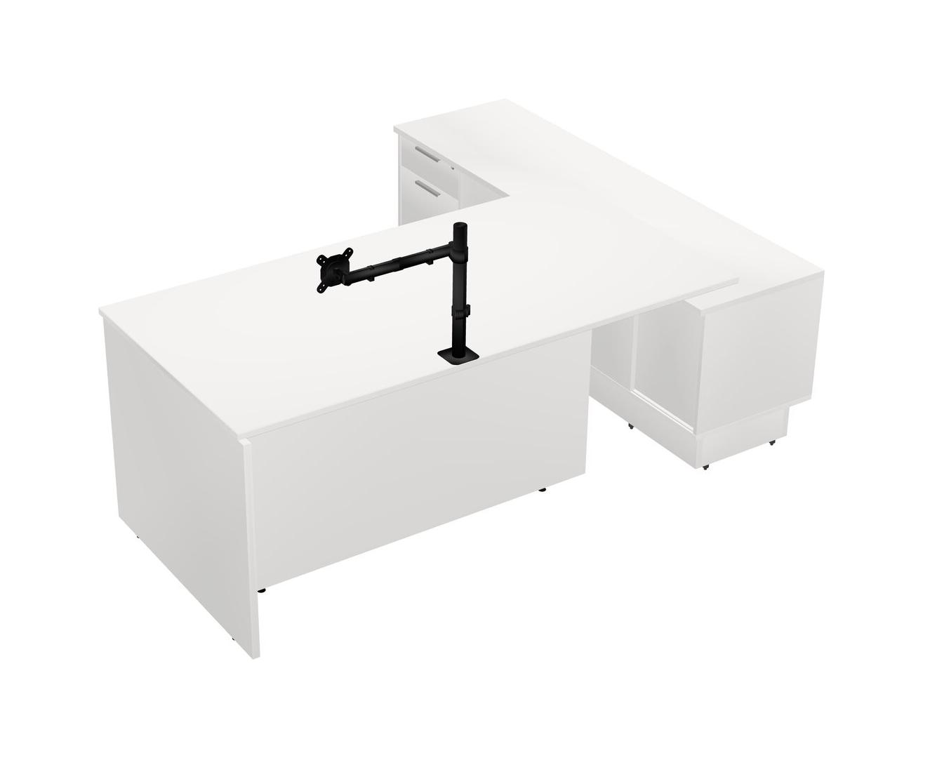 White Modern Executive Desk With Low Sliding Door Cabinet With Built-in Drawers + Monitor Arm (single Arm)