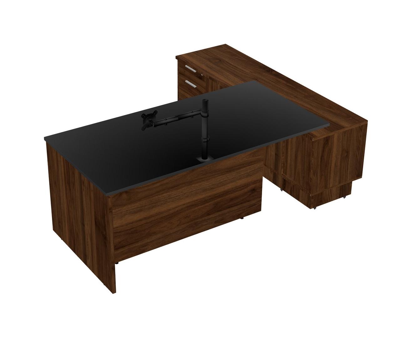 Black Modern Executive Desk With Low Sliding Door Cabinet With Built-in Drawers + Monitor Arm (single Arm)