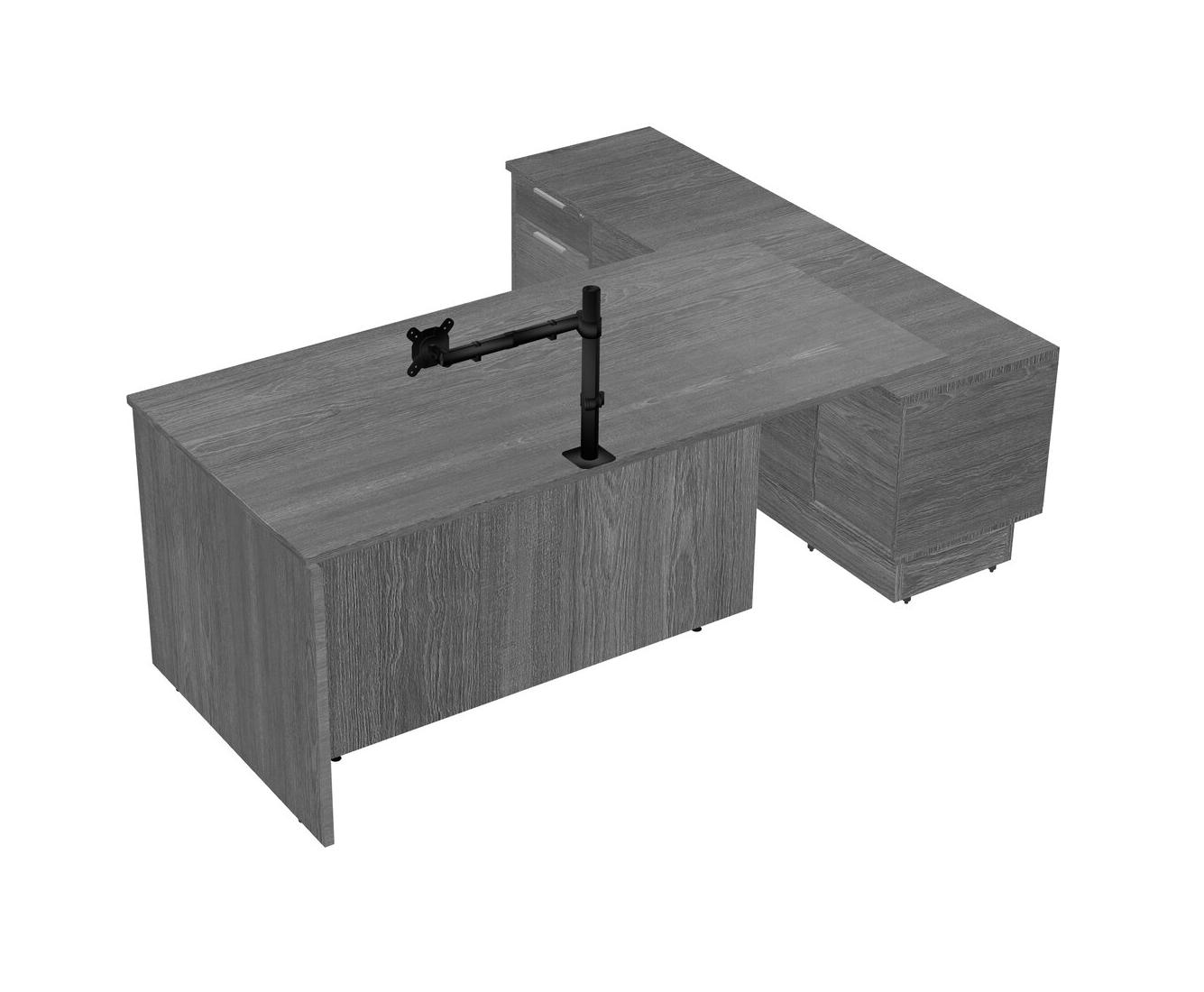 Grey Modern Executive Desk With Low Sliding Door Cabinet With Built-in Drawers + Monitor Arm (single Arm)