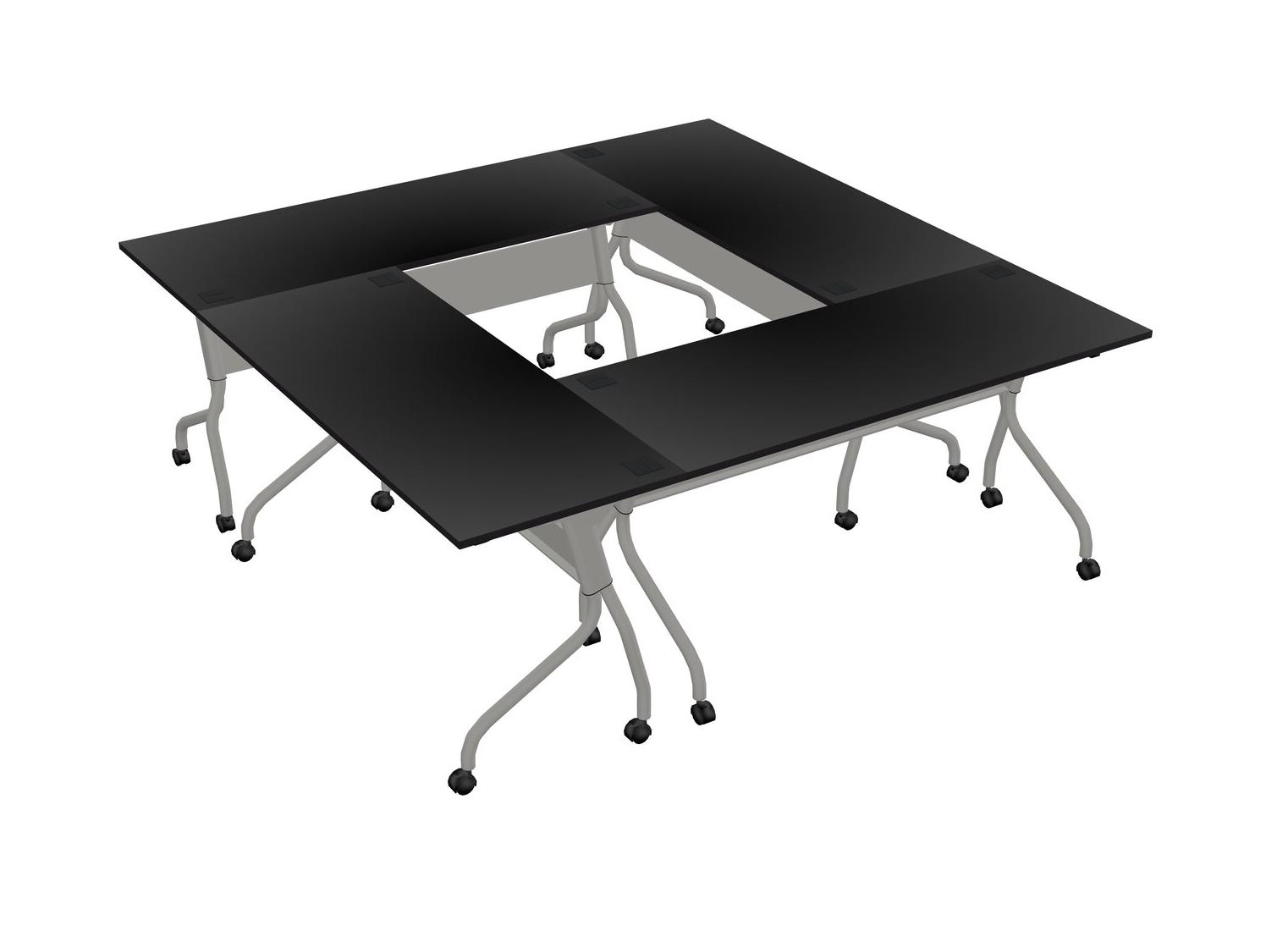 Mobile Workstations U-Shaped Training Table - Flip-Top Desk - Classroom Table - Seminar Table - Black