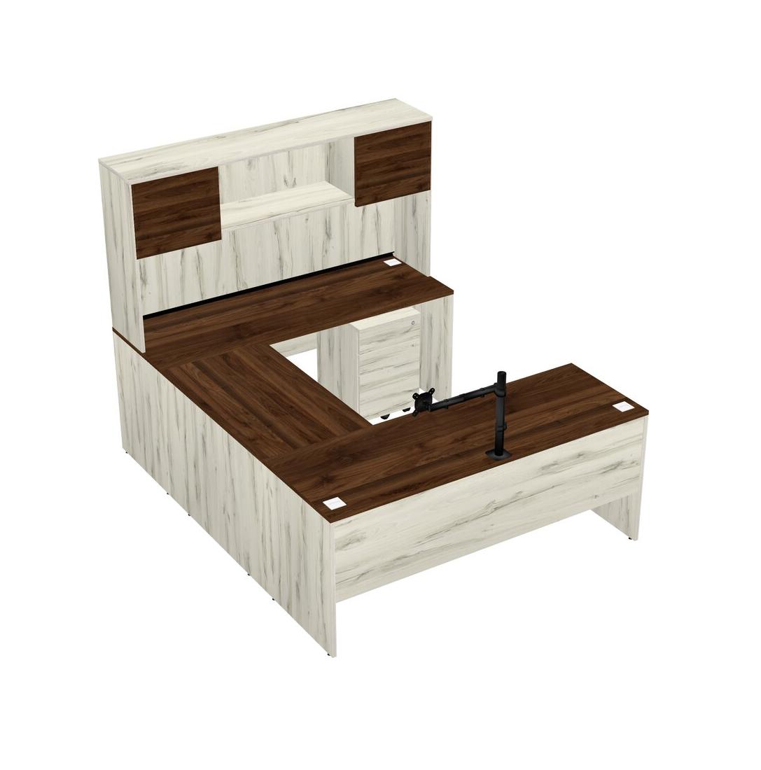 Office U-shaped Desk Credenza Desk + Wooden Mobile Drawers + Hutch + Monitor Arm (single Arm)