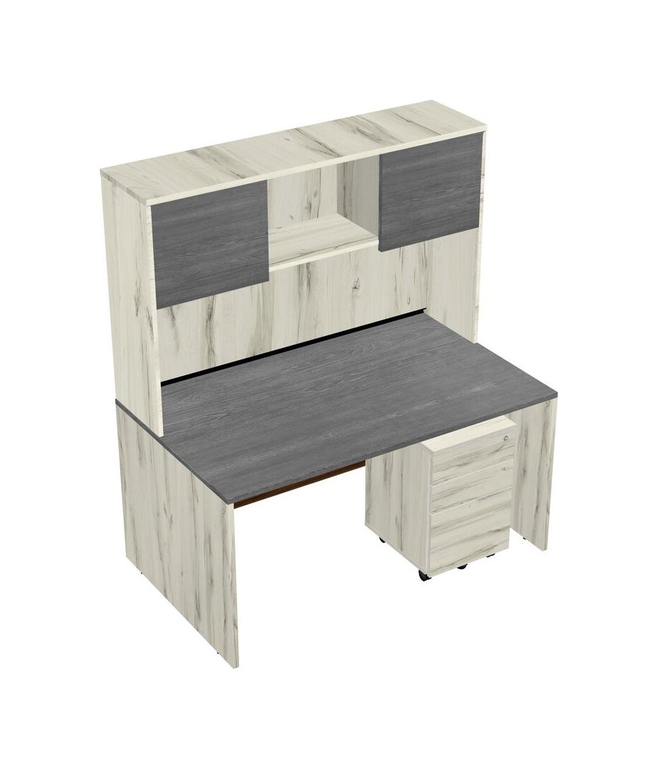Grey Rectangular Office Desk Plus Heinne Holz Wooden Mobile Drawers And Heinne Holz Hutch