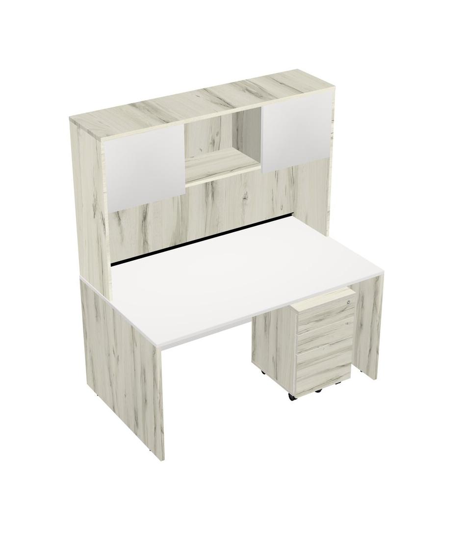 White Rectangular Office Desk Plus Heinne Holz Wooden Mobile Drawers And Heinne Holz Hutch