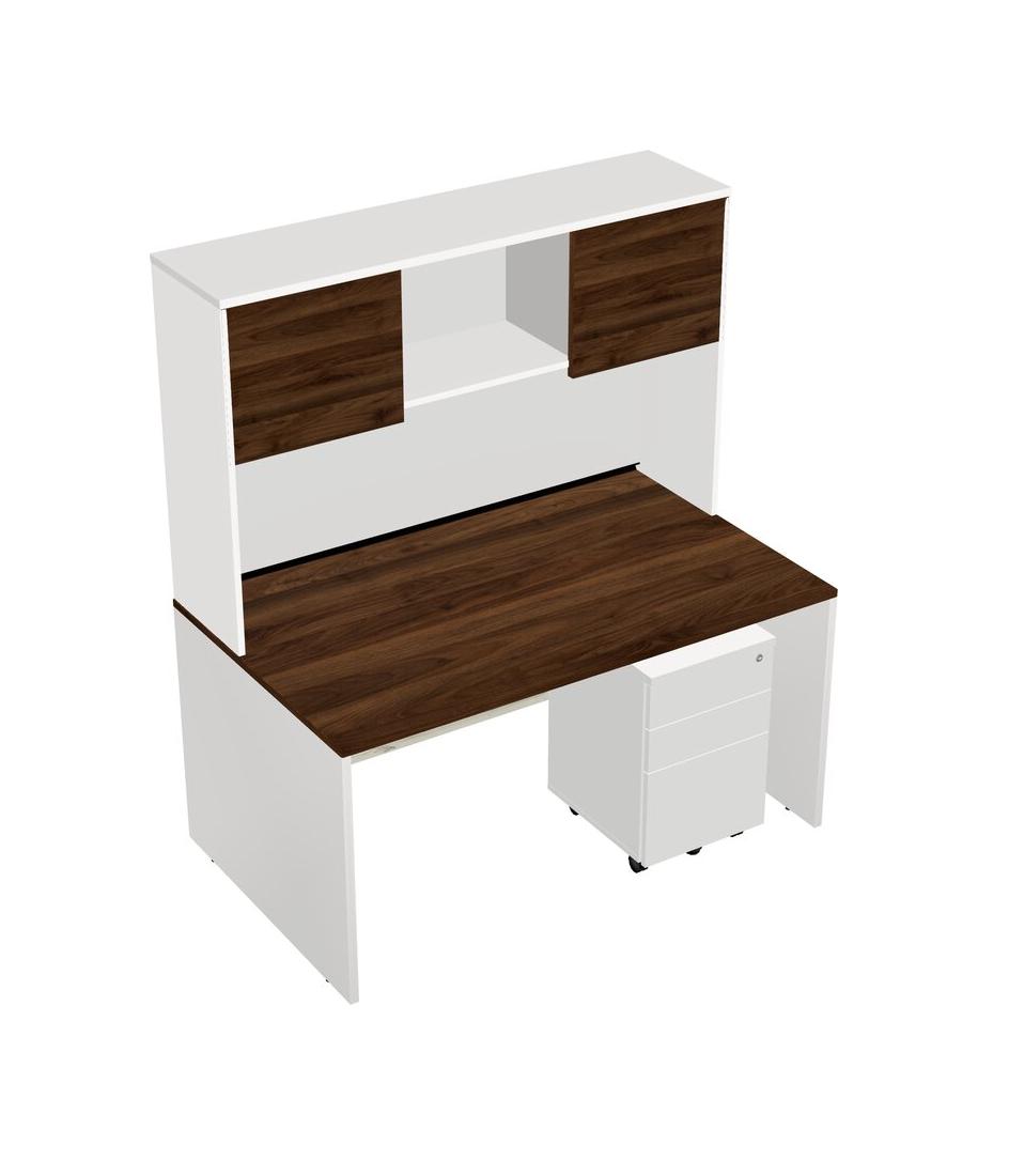 Columbia Walnut Rectangular Office Desk Plus White Wooden Mobile Drawers And White Hutch