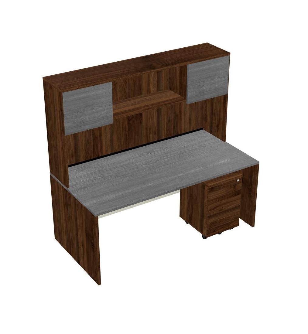Grey Rectangular Office Desk Plus Columbia Walnut Wooden Mobile Drawers And Columbia Walnut Hutch