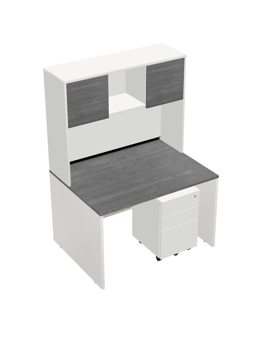 Grey Rectangular Office Desk Plus White Wooden Mobile Drawers And White Hutch