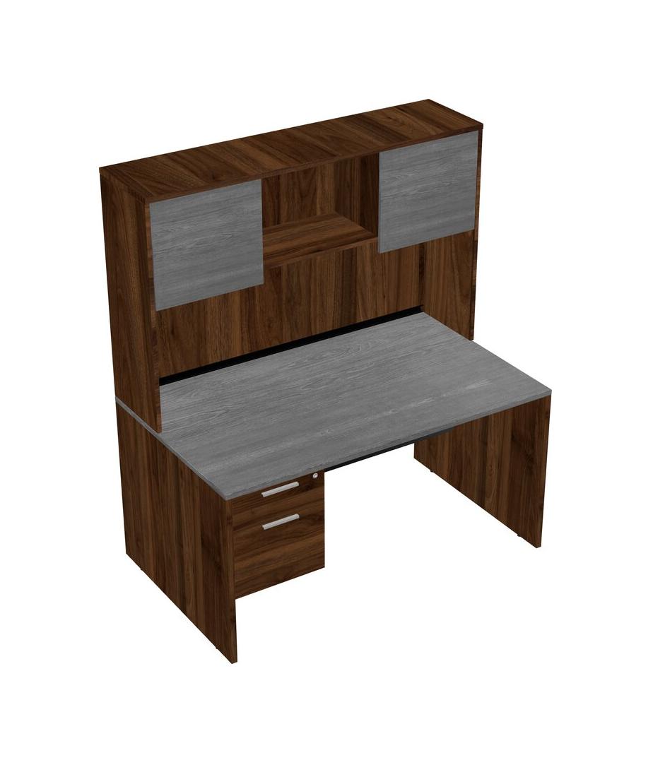 Grey Rectangular Office Desk Plus Columbia Walnut Hanging Drawers And Columbia Walnut Hutch