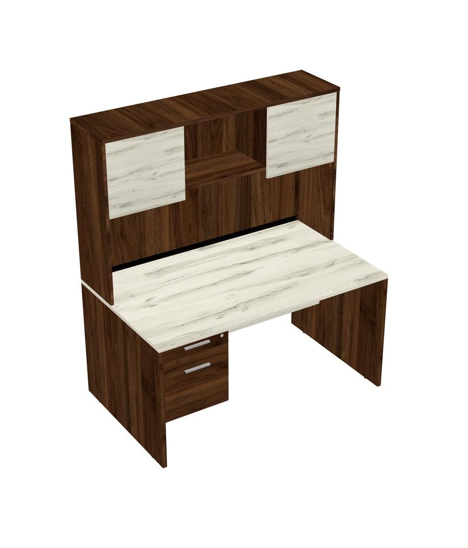 Heinne Holz Rectangular Office Desk Plus Columbia Walnut Hanging Drawers And Columbia Walnut Hutch