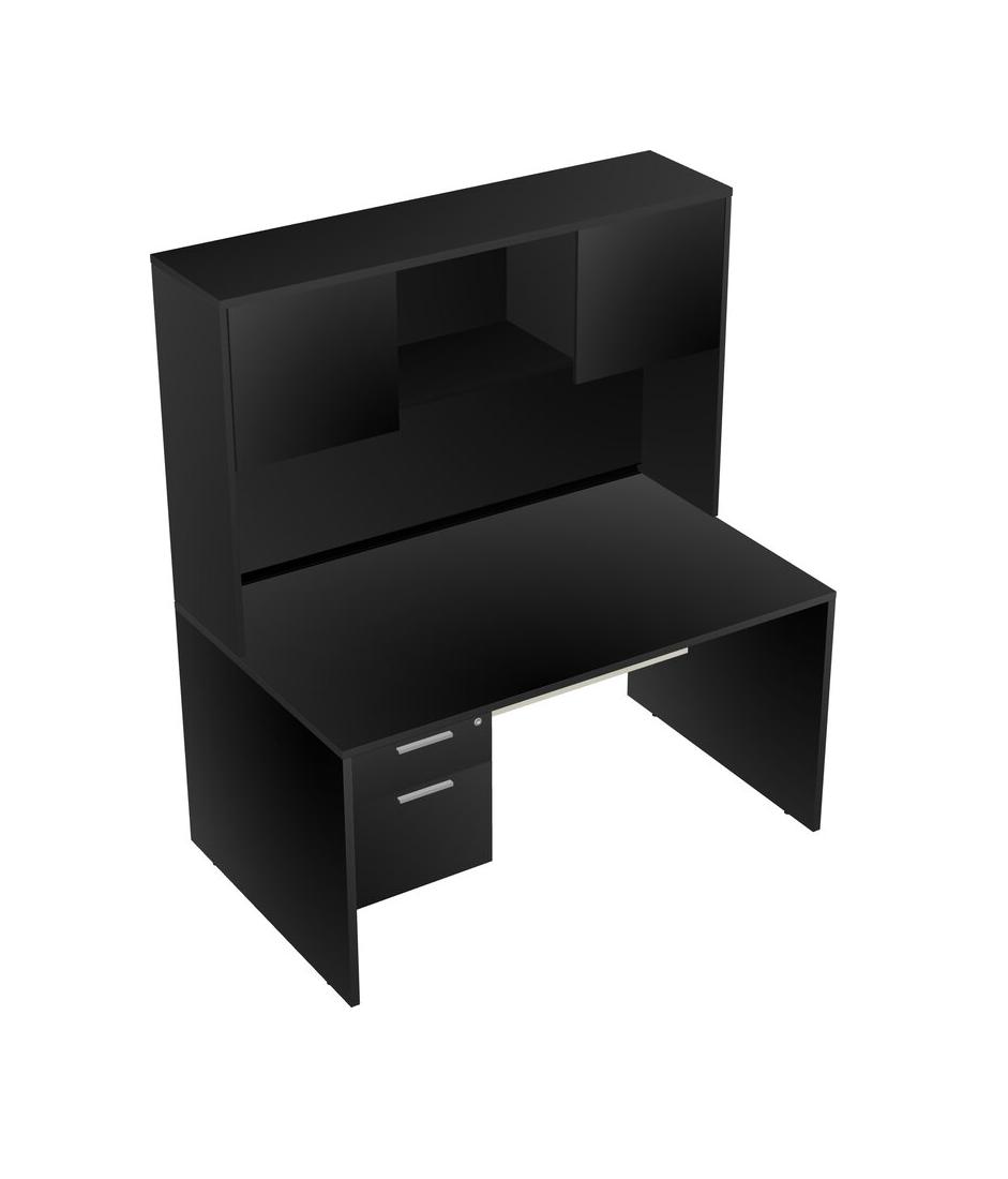 Black Rectangular Office Desk Plus Black Hanging Drawers And Black Hutch