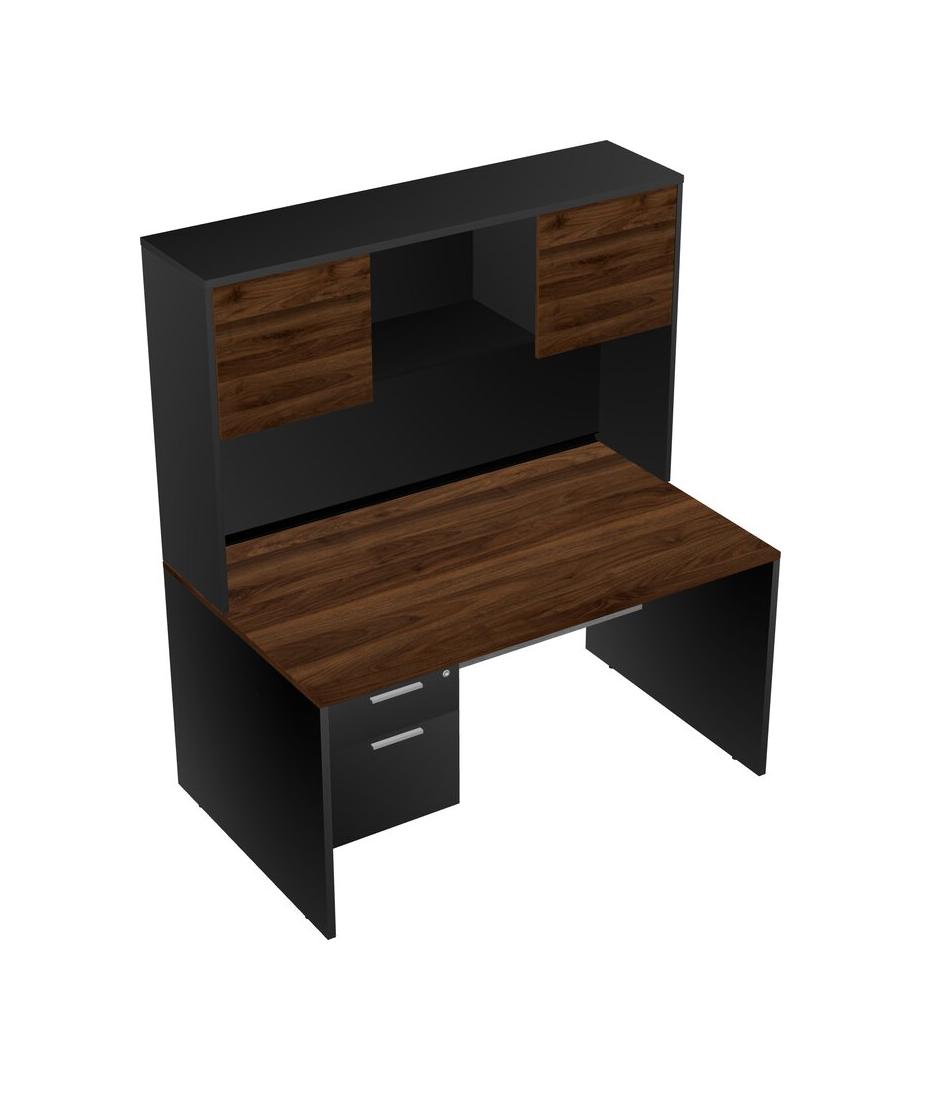 Columbia Walnut Rectangular Office Desk Plus Black Hanging Drawers And Black Hutch
