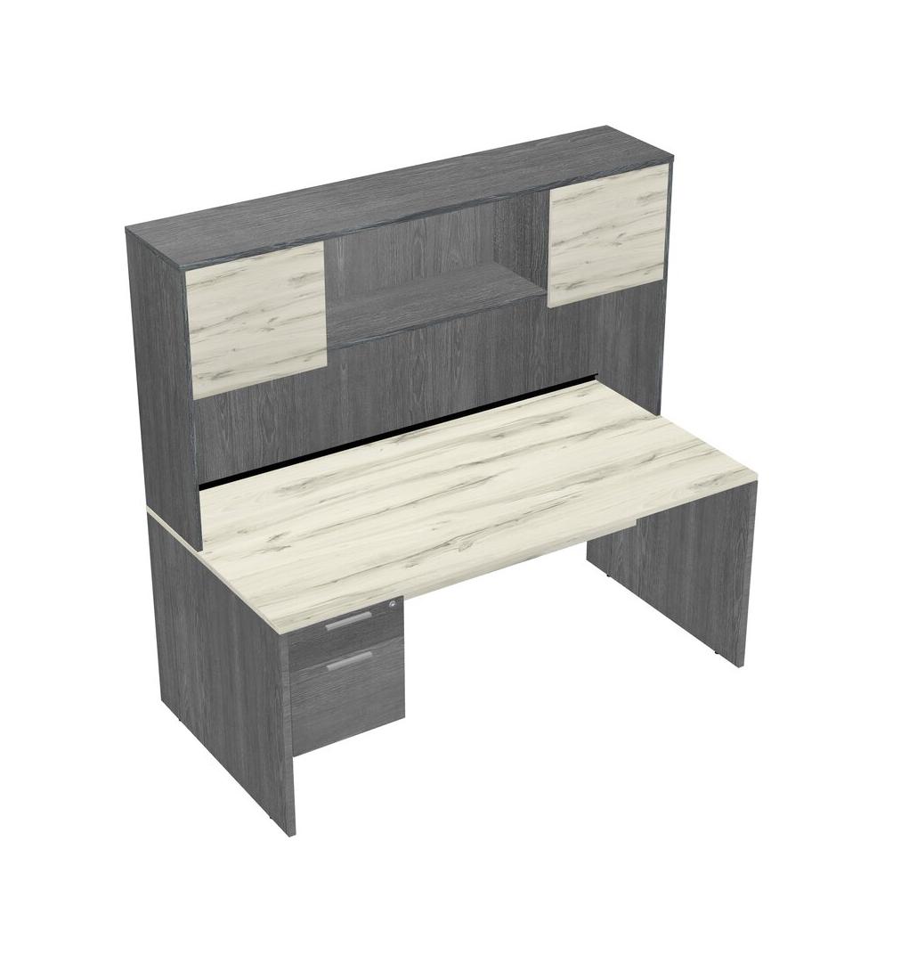 Heinne Holz Rectangular Office Desk Plus Grey Hanging Drawers And Grey Hutch