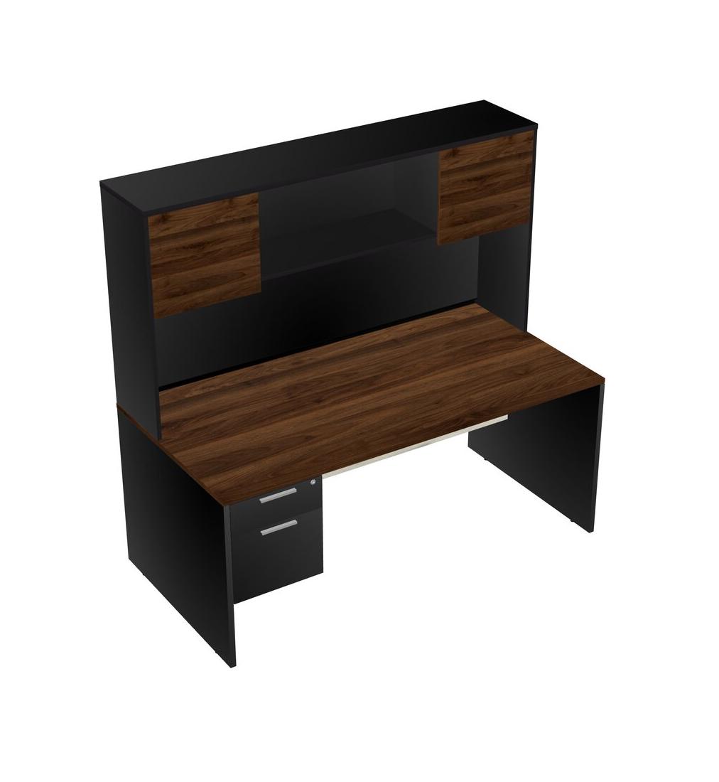 Columbia Walnut Rectangular Office Desk Plus Black Hanging Drawers And Black Hutch