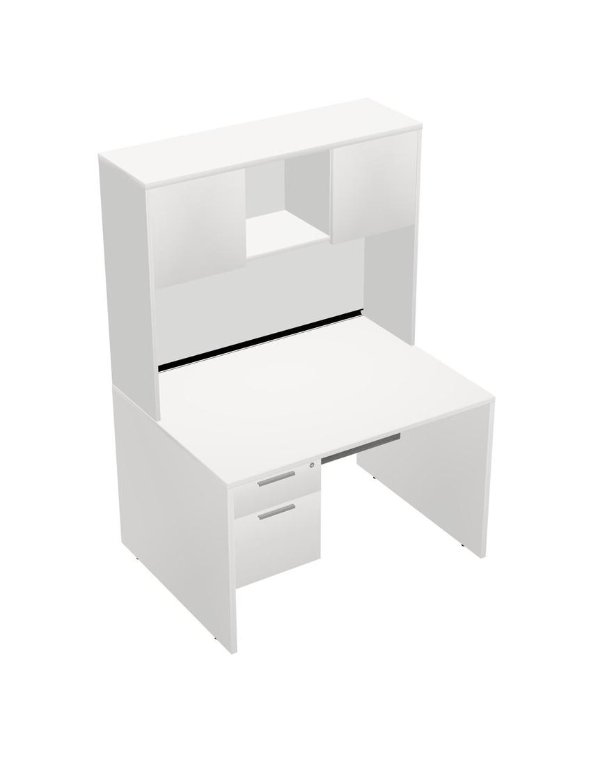 White Rectangular Office Desk Plus White Hanging Drawers And White Hutch