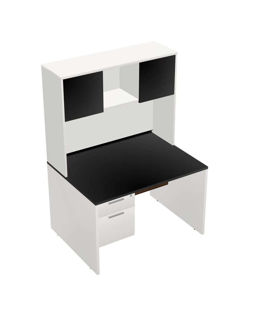 Black Rectangular Office Desk Plus White Hanging Drawers And White Hutch