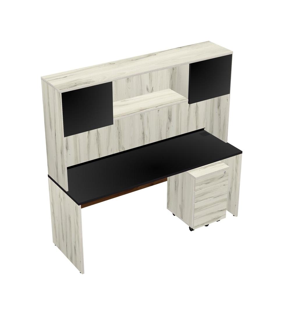 Black Rectangular Office Desk Plus Heinne Holz Wooden Mobile Drawers And Heinne Holz Hutch