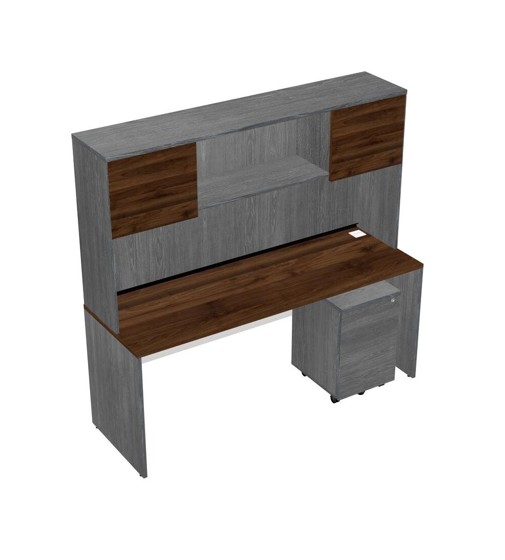 Columbia Walnut Rectangular Office Desk Plus Grey Wooden Mobile Drawers And Grey Hutch