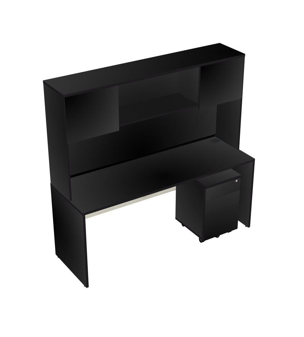 Black Rectangular Office Desk Plus Black Wooden Mobile Drawers And Black Hutch