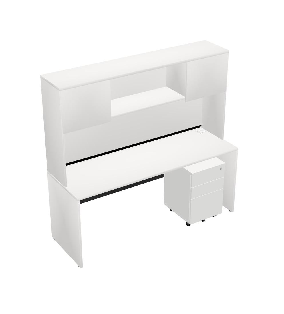 White Rectangular Office Desk Plus White Wooden Mobile Drawers And White Hutch