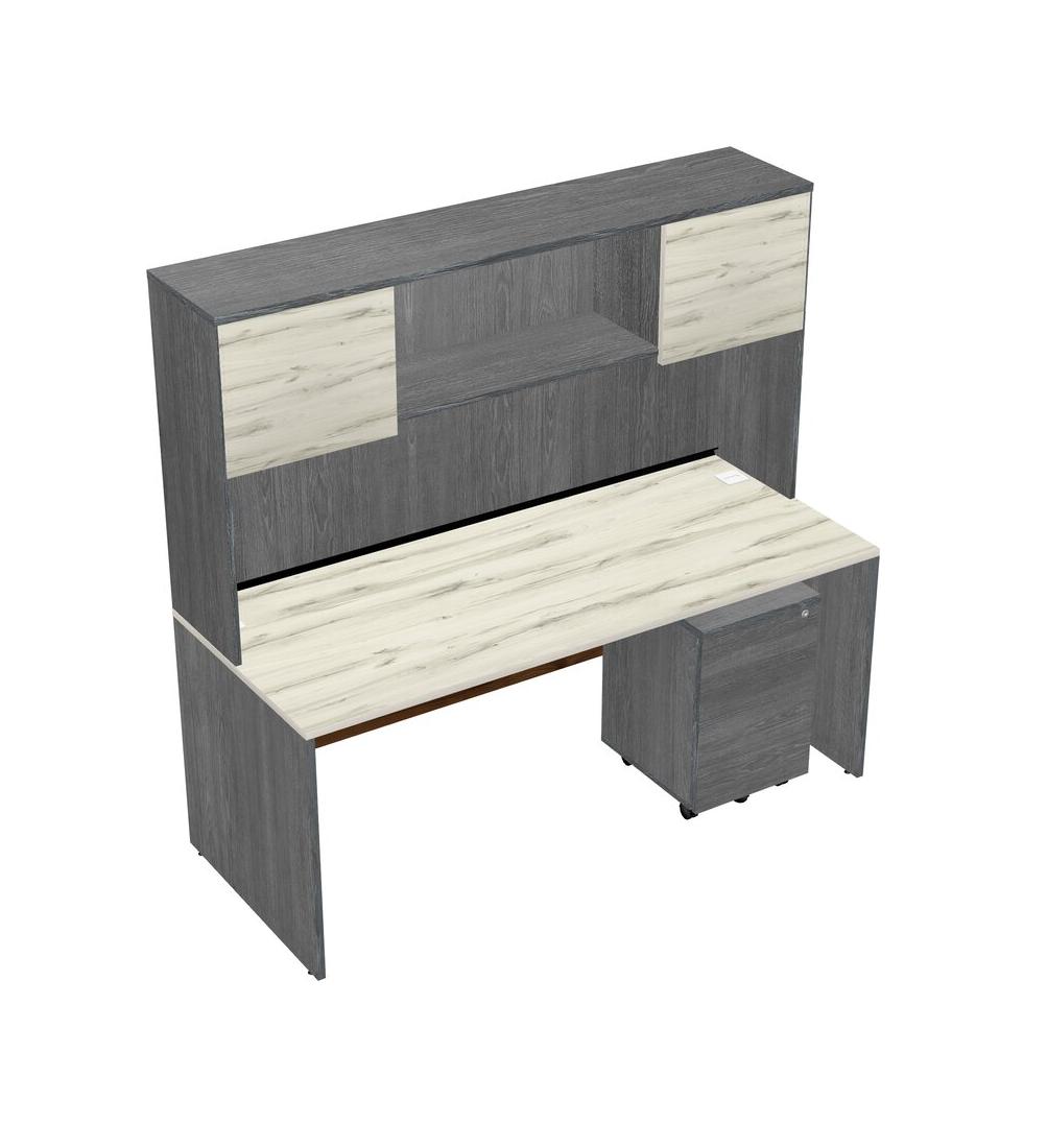 Heinne Holz Rectangular Office Desk Plus Grey Wooden Mobile Drawers And Grey Hutch