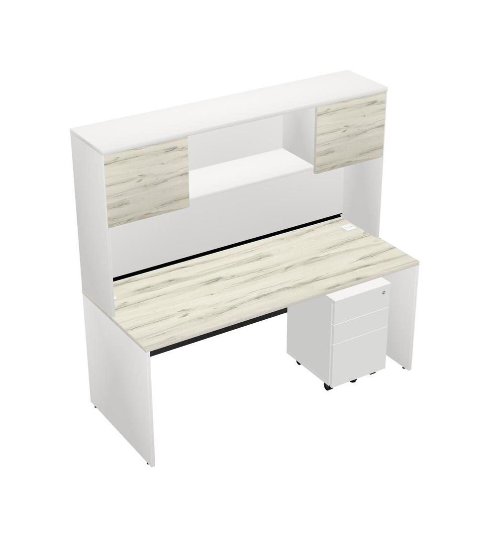 Heinne Holz Rectangular Office Desk Plus White Wooden Mobile Drawers And White Hutch