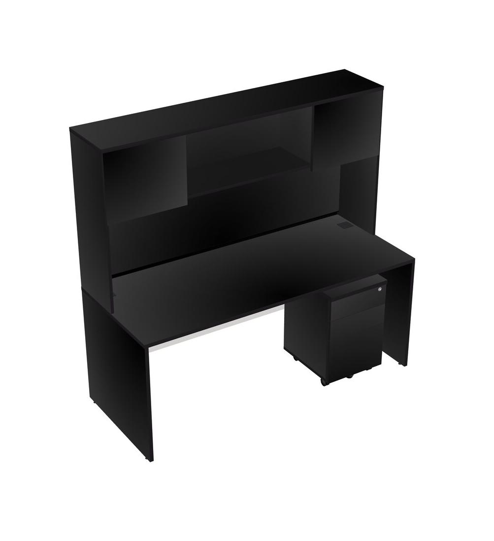 Black Rectangular Office Desk Plus Black Wooden Mobile Drawers And Black Hutch