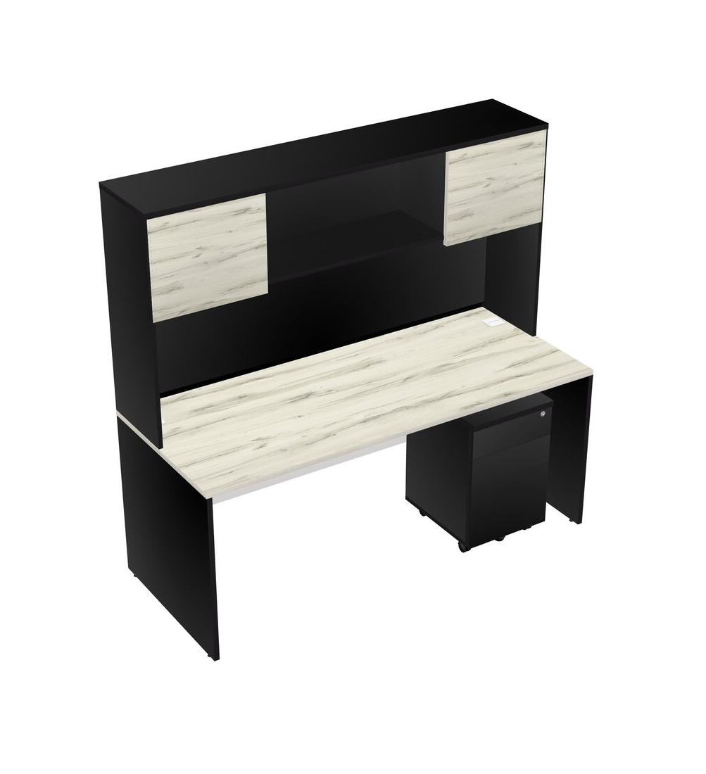 Heinne Holz Rectangular Office Desk Plus Black Wooden Mobile Drawers And Black Hutch