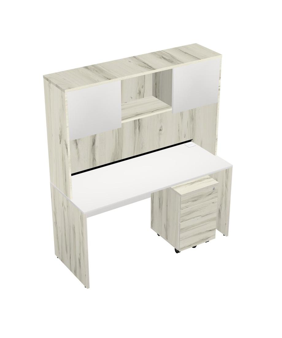 White Rectangular Office Desk Plus Heinne Holz Wooden Mobile Drawers And Heinne Holz Hutch