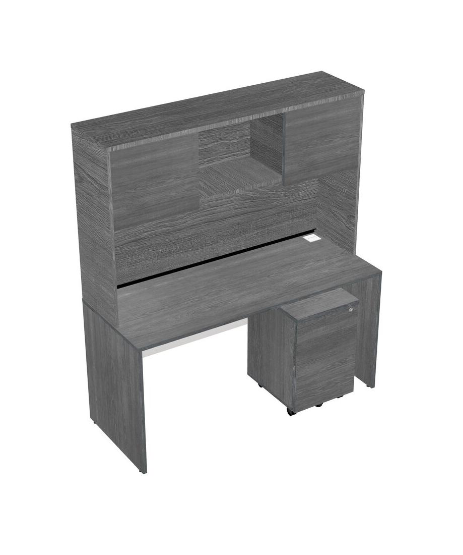 Grey Rectangular Office Desk Plus Grey Wooden Mobile Drawers And Grey Hutch
