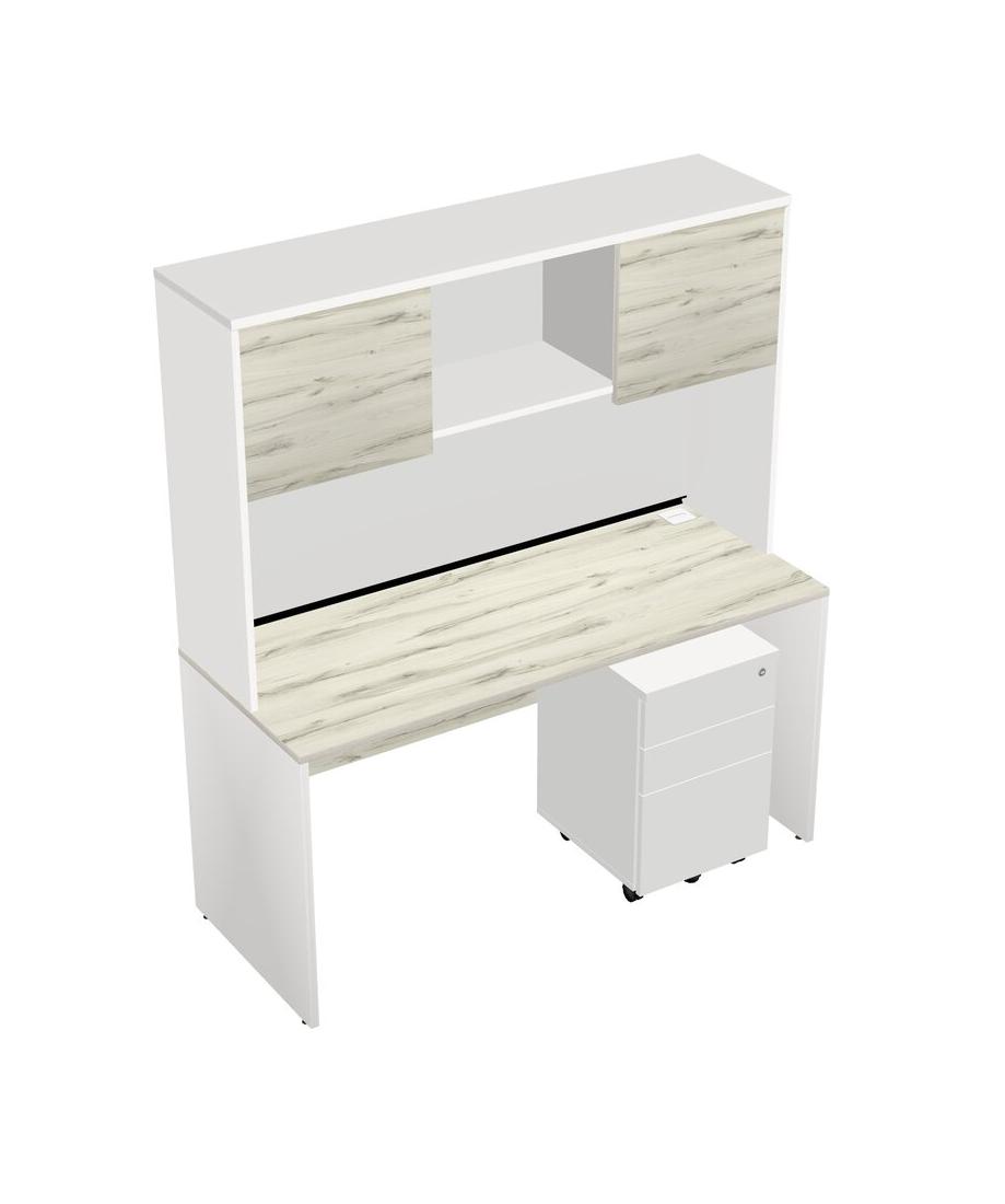 Heinne Holz Rectangular Office Desk Plus White Wooden Mobile Drawers And White Hutch
