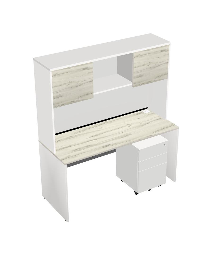 Heinne Holz Rectangular Office Desk Plus White Wooden Mobile Drawers And White Hutch