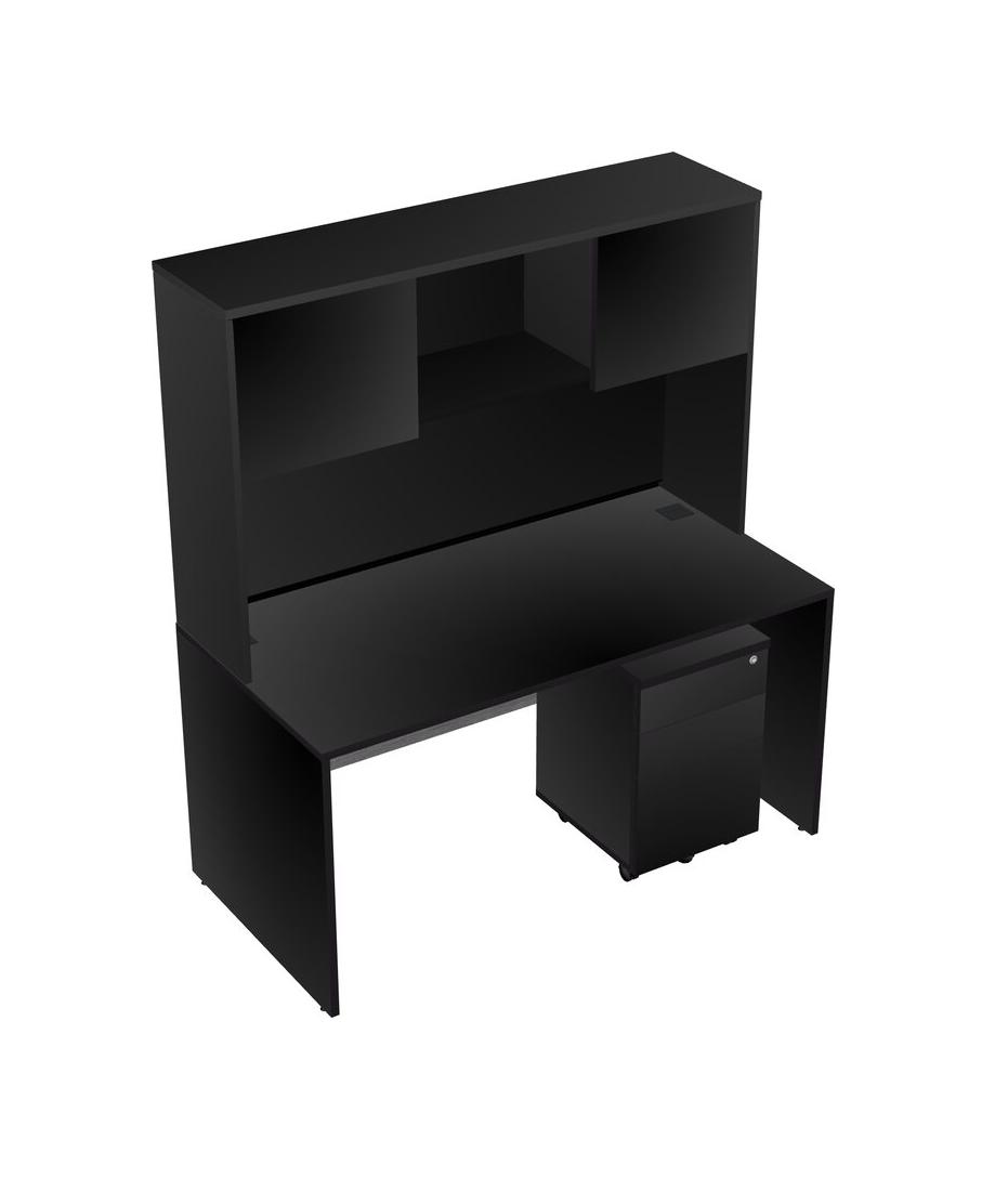 Black Rectangular Office Desk Plus Black Wooden Mobile Drawers And Black Hutch