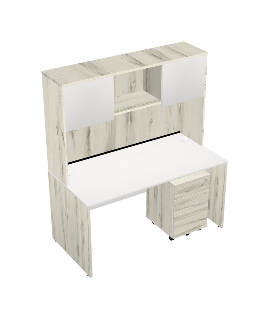 White Rectangular Office Desk Plus Heinne Holz Wooden Mobile Drawers And Heinne Holz Hutch
