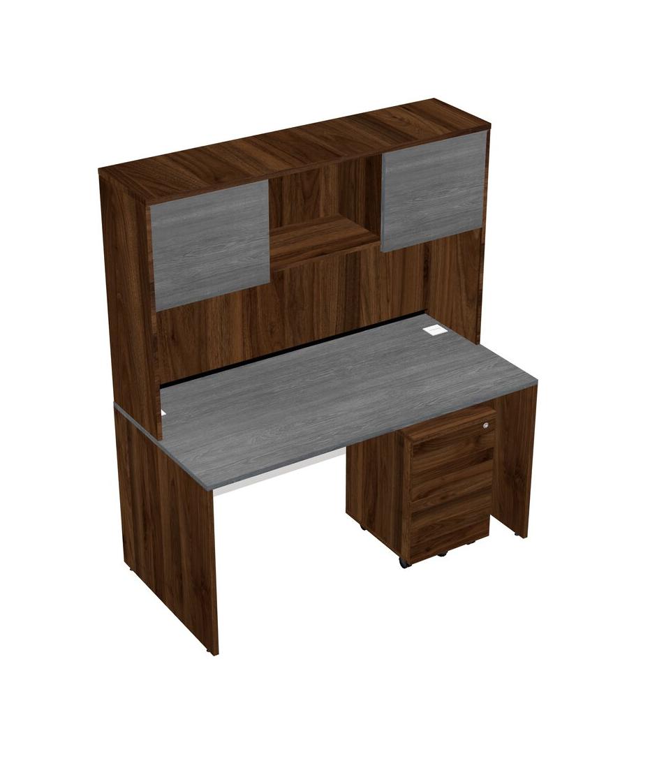 Grey Rectangular Office Desk Plus Columbia Walnut Wooden Mobile Drawers And Columbia Walnut Hutch