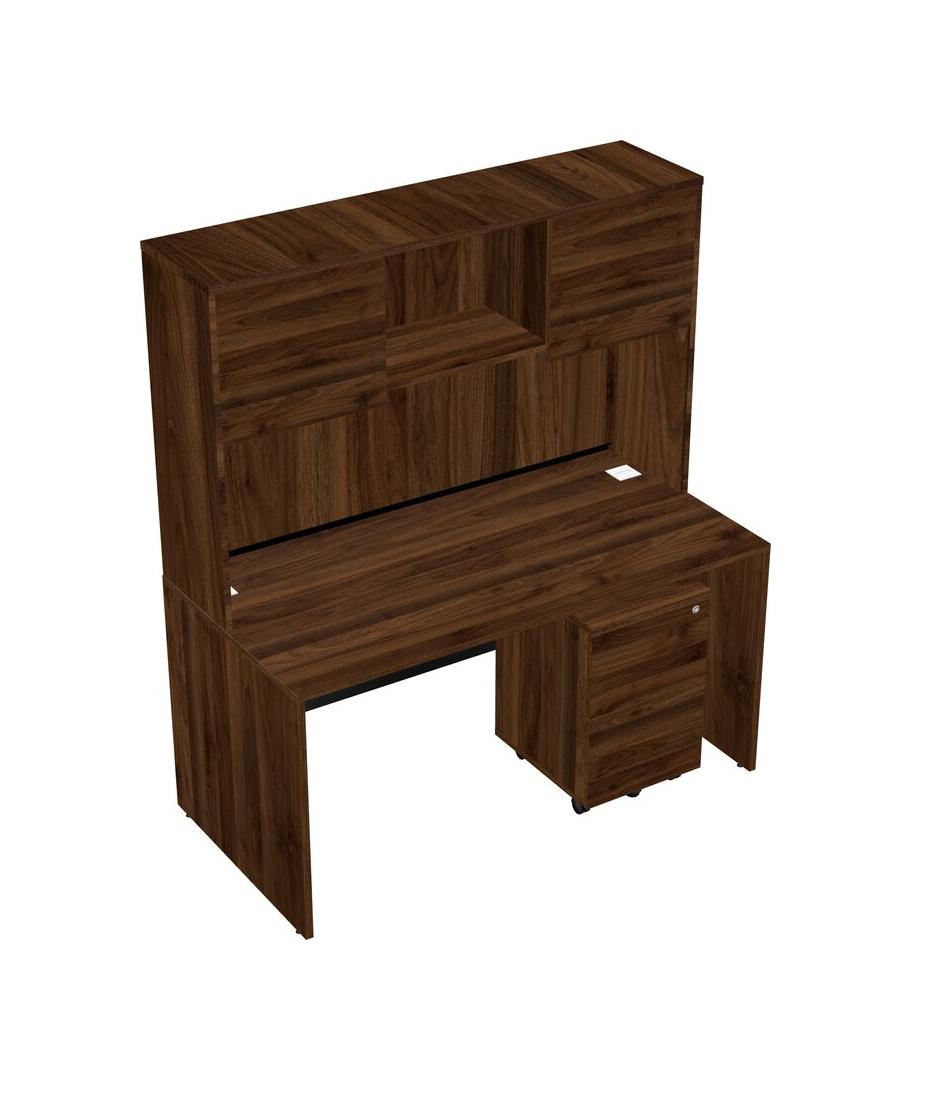 Columbia Walnut Rectangular Office Desk Plus Columbia Walnut Wooden Mobile Drawers And Columbia Walnut Hutch
