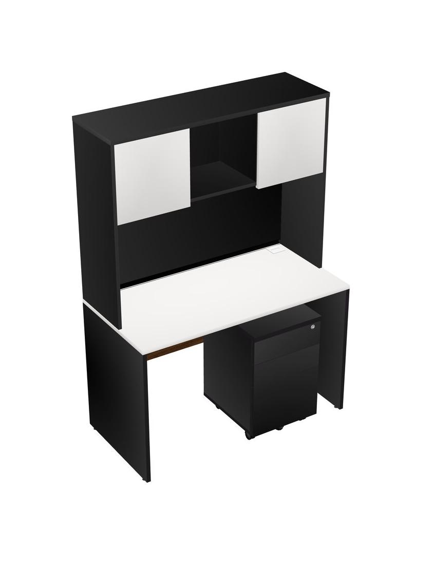 White Rectangular Office Desk Plus Black Wooden Mobile Drawers And Black Hutch