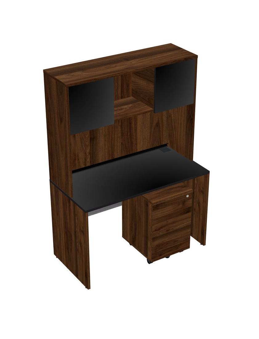Black Rectangular Office Desk Plus Columbia Walnut Wooden Mobile Drawers And Columbia Walnut Hutch