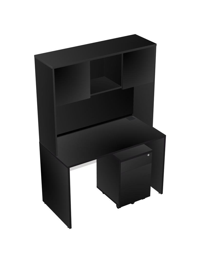 Black Rectangular Office Desk Plus Black Wooden Mobile Drawers And Black Hutch