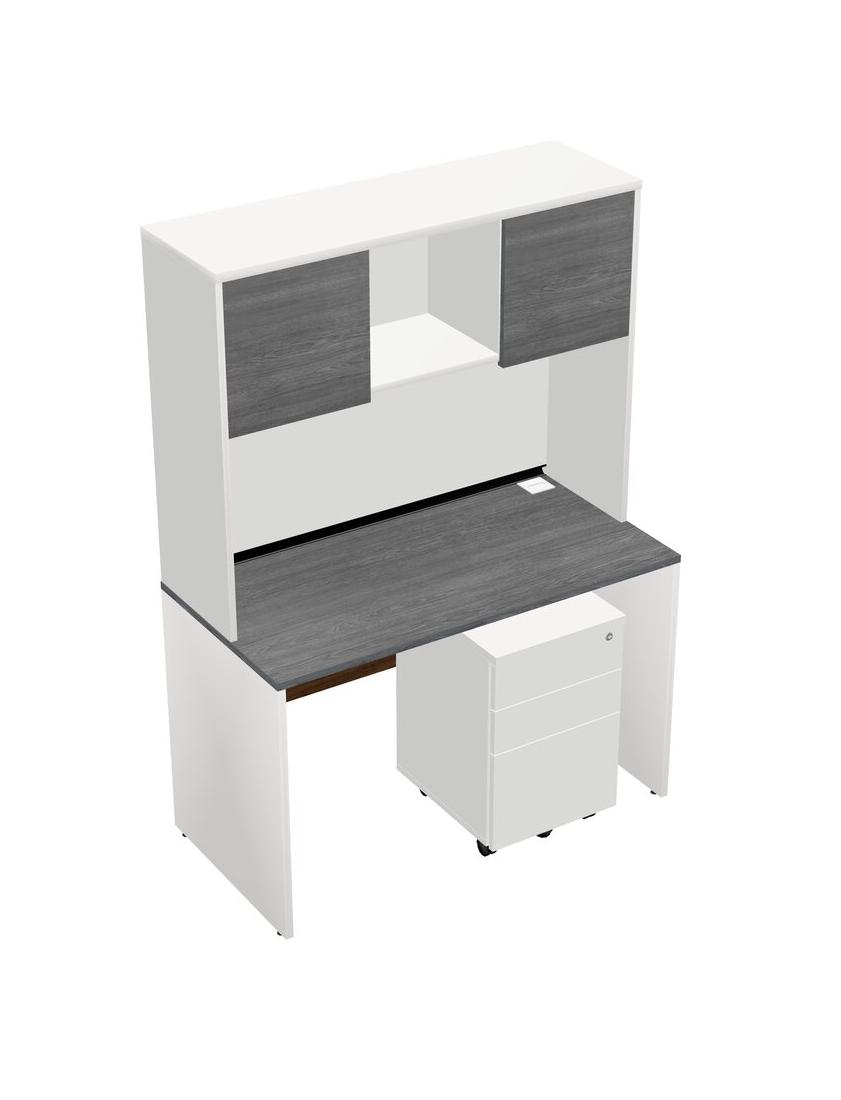 Grey Rectangular Office Desk Plus White Wooden Mobile Drawers And White Hutch