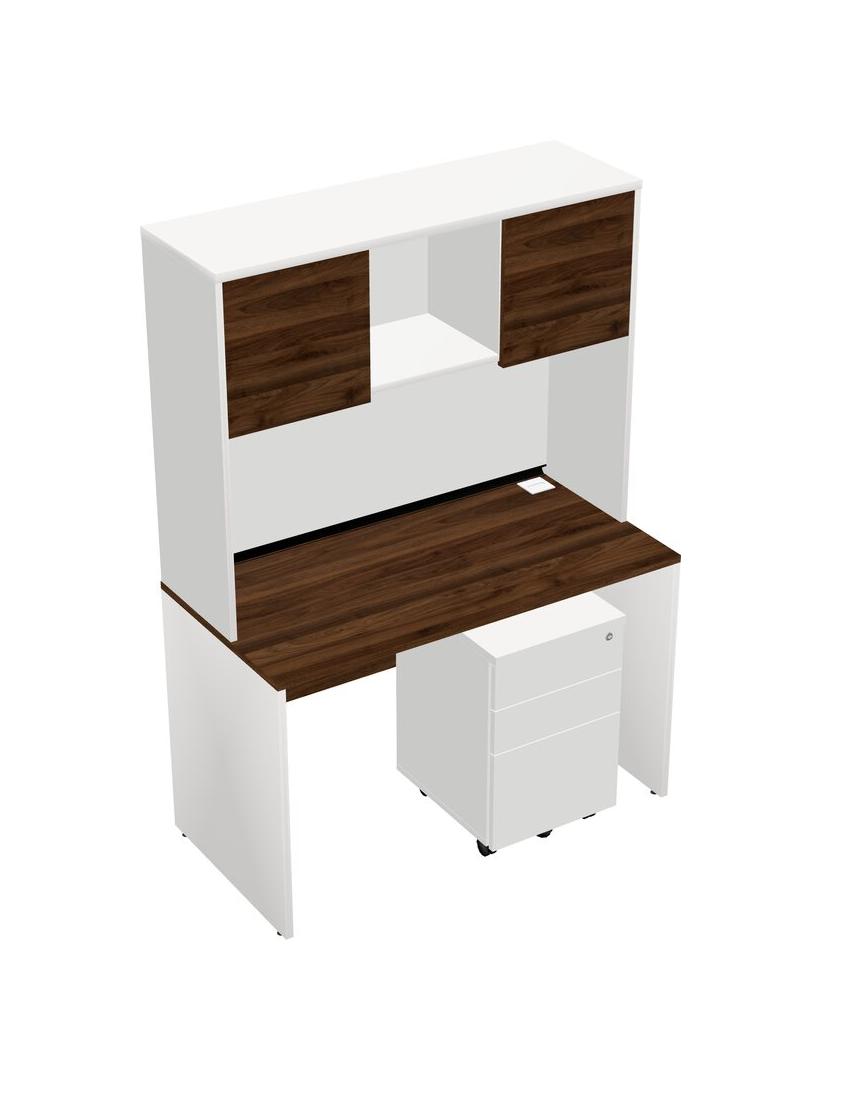 Columbia Walnut Rectangular Office Desk Plus White Wooden Mobile Drawers And White Hutch