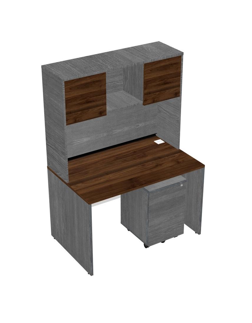 Columbia Walnut Rectangular Office Desk Plus Grey Wooden Mobile Drawers And Grey Hutch