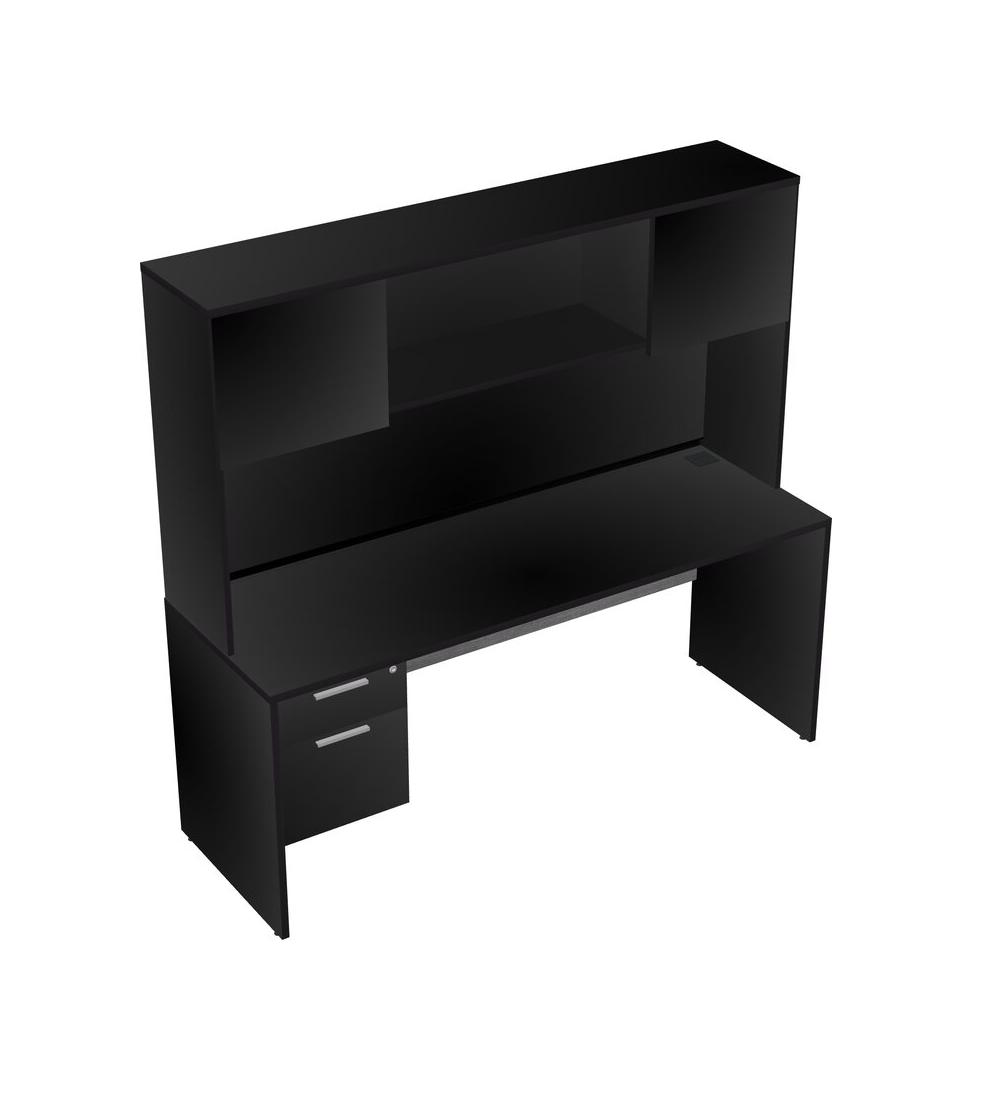 Black Rectangular Office Desk Plus Black Hanging Drawers And Black Hutch
