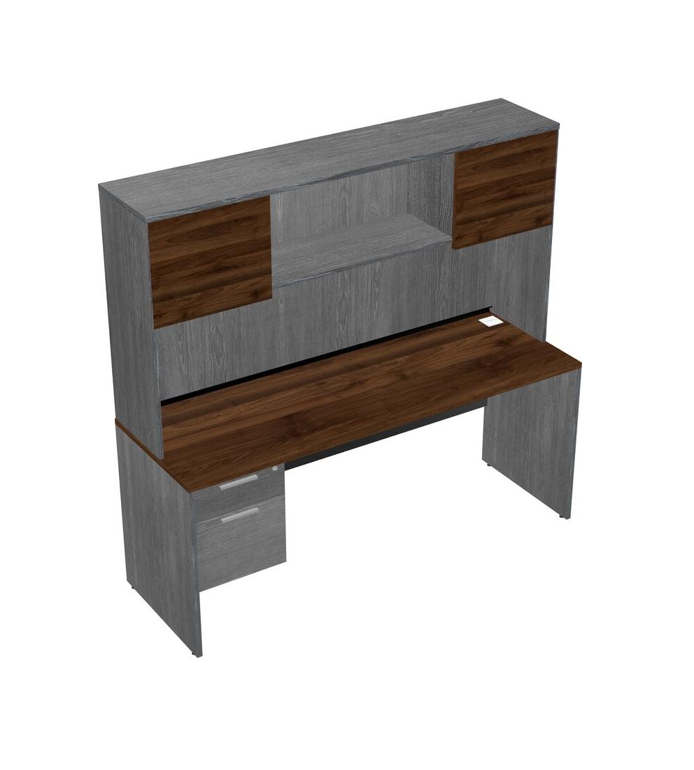 Columbia Walnut Rectangular Office Desk Plus Grey Hanging Drawers And Grey Hutch